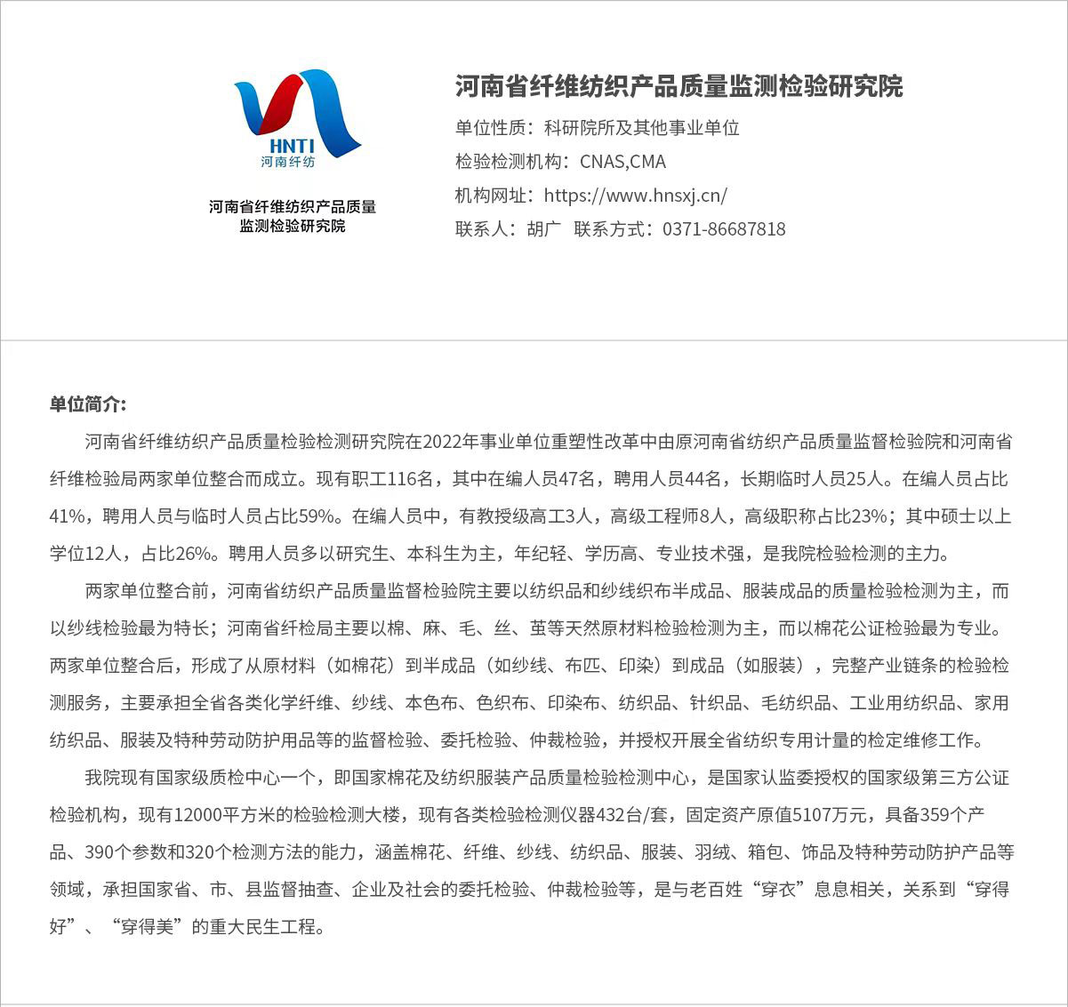 河南省纤维纺织产品质量监测检验研究院欢迎您!